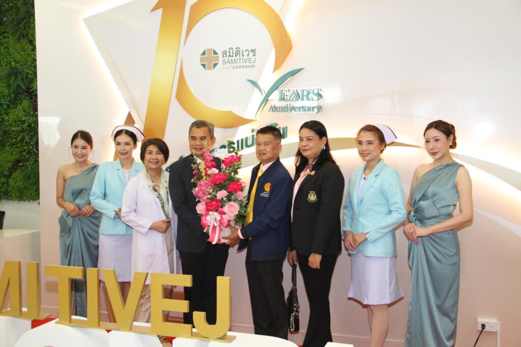 เมื่อวันที่ 5 มิถุนายน ที่โรงพยาบาลสมิติเวช ชลบุรี อ.เมือง จ.ชลบุรี นายสนธยา คุณปลื้ม อดีตรัฐมนตรีว่าการกระทรวงวัฒนธรรม พร้อมด้วย พล.ต.ต.ธนาวุฒิ จงจิระ ผู้บังคับการศูนย์ฝึกอบรมตำรวจภูธร ภาค 2 นายณพล (สัมภาษณ์) บริบูรณ์ ที่ปรึกษา/คณะทำงานสมาชิกวุฒิสภา (สว.) นายสมหมาย ศรีจันทร์, ที่ปรึกษาสมาชิกวุฒิสภา นายสรชาติ วิชย สุวรรณพรหม, ที่ปรึกษาคณะอนุกรรมาธิการ การเงิน การคลัง สภาผู้แทนราษฎร, ที่ปรึกษาประธานกรรมาธิการคุ้มครองผู้บริโภค สภาผู้แทนราษฎร และนายกสมาคมสื่อมวลชนและนักประชาสัมพันธ์ภาคตะวันออก, น.ส.นภชนก เหมือนนามอญ ที่ปรึกษา กมธ.คุ้มครองผู้บริโภค สภาผู้แทนราษฎร และที่ปรึกษาคณะอนุกรรมาธิการ การเงิน การคลัง นายณรงค์ชัย คุณปลื้ม ว่าที่นายกเทศมนตรีเมืองแสนสุข นายไกรสร ฉัตรเลขวนิช ประธานหอการค้าจังหวัดชลบุรี นายธีรินทร์ ธัญญวัฒนกุล ประธานที่ปรึกษากิตติมศักดิ์หอการค้าจังหวัดชลบุรี สิริลดา คุณปลื้ม ภรรยานายวิทยา คุณปลื้ม นายก อบจ.ชลบุรี พร้อมด้วยข้าราชการ นักธุรกิจ ตำรวจ นักการเมือง ร่วมแสดงความยินดี 10 ปี สมิติเวช ชลบุรี “ก้าวสู่ทศวรรษใหม่ เพื่อสุขภาพที่ยั่งยืน” โดยมี นพ.ภราดร กุลเกลี้ยง ผู้อำนวยการ รพ.สมิติเวชชลบุรี รวมทั้งผู้บริหาร พนักงาน รพ.สมิติเวช ชลบุรี ร่วมให้การต้อนรับ