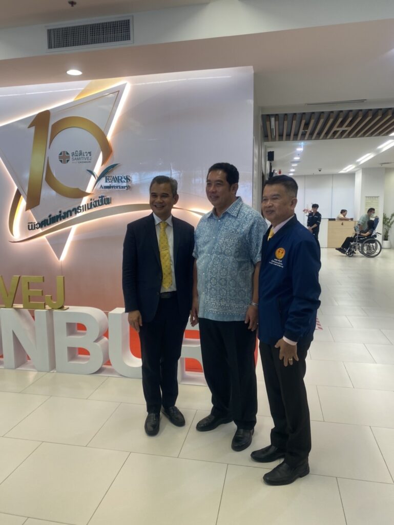 “วันนี้ สมิติเวช ชลบุรี ก้าวสู่ทศวรรษใหม่ พร้อมพัฒนาบริการด้านสุขภาพแบบครบทุกมิติ เปิดประสบการณ์การดูแลสุขภาพเหนือระดับ The Prime & Platinum Floor 8 ‘สุขภาพดีที่คุณเลือกได้ เพื่อชีวิตที่ยั่งยืน’ เสริมการดูแลเชิงป้องกันอย่างต่อเนื่องกับพื้นที่ใหม่ Active & Alive Zone พร้อมทีมแพทย์และบุคลากรที่ทุ่มเท ใส่ใจ และเข้าใจผู้เข้ารับบริการอย่างแท้จริง ตั้งแต่การประเมินสุขภาพอย่างละเอียด การจัดทำแผนดูแลสุขภาพส่วนบุคคล ไปจนถึงการติดตามผลอย่างใกล้ชิดและต่อเนื่อง ด้วยความทุ่มเทและความมุ่งมั่นดังกล่าว รพ.สมิติเวช ชลบุรี จึงได้การรับรองอันทรงเกียรติ Platinum Service Excellence จากสมาคมตัวแทนประกันชีวิตและที่ปรึกษาการเงิน จังหวัดชลบุรี รพ.สมิติเวช ชลบุรี ขอขอบคุณทุกความไว้วางใจ ที่ทำให้เราได้เป็นส่วนหนึ่งในการดูแลสุขภาพ” นพ.ภราดรกล่าว