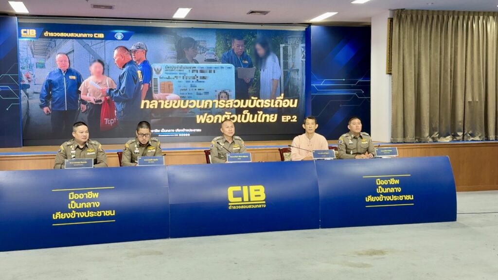 เมื่อเวลา 10.30 น. วันที่ 12 ก.ย. ที่กองบังคับการปราบปราม (บก.ป.) พล.ต.ต.วิทยา ศรีประเสริฐภาพ ผบก.ป. พร้อมด้วย พ.ต.อ.บุญลือ ผดุงถิ่น รอง ผบก.ป., พ.ต.ท.พงศกร ตันอารีย์ รอง ผกก.2 บก.ป., พ.ต.ต.อดิศร อินทิยศ สว.กก.2 บก.ป. และนายแสน สุรวิญญูวร ผอ.สปท. ร่วมแถลงผลปฏิบัติการ “ทลายขบวนการสวมบัตรเถื่อน ฟอกตัวเป็นไทย EP.2” หลังสืบสวนขยายผลจากคดีเมื่อเดือนเมษายนที่ผ่านมา