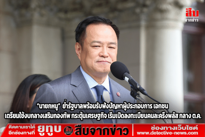 เมื่อวันที่ (1ต.ค.) ทำเนียบรัฐบาล ตึกไทยคู่ฟ้า นายอนุทิน ชาญวีรกุล นายกรัฐมนตรี และรัฐมนตรีว่าการกระทรวงมหาดไทย แถลงภายหลังการประชุม ครม. ที่รัฐสภาเมื่อคืนวาน ถึงการขับเคลื่อนนโยบายรัฐบาล โดยย้ำว่าผู้ประกอบการสามารถสะท้อนปัญหาและข้อขัดข้องต่าง ๆ มายังรัฐบาลได้ เพื่อให้สามารถหาทางออกอย่างเป็นรูปธรรม