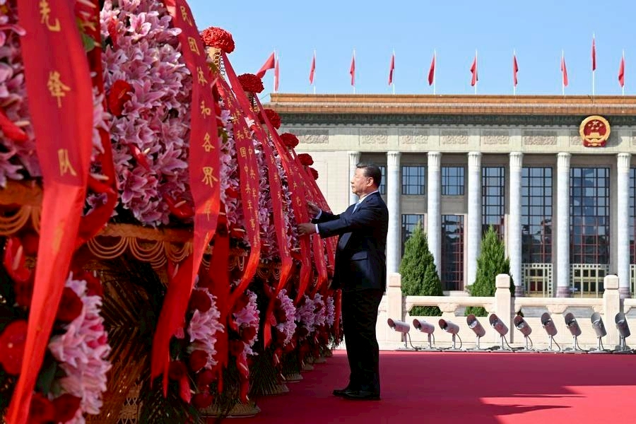เมื่อวันอังคาร (30 ก.ย.) สีจิ้นผิง ประธานาธิบดีจีน ซึ่งเป็นเลขาธิการใหญ่คณะกรรมกลางพรรคคอมมิวนิสต์จีน และประธานคณะกรรมาธิการการทหารส่วนกลาง ได้เข้าร่วมงานเลี้ยงรับรอง ณ อาคารมหาศาลาประชาชนในกรุงปักกิ่ง เพื่อเฉลิมฉลองวาระครบรอบ 76 ปี การก่อตั้งสาธารณรัฐประชาชนจีน (PRC) กล่าวสนับสนุนประชาชนชาวจีน ตั้งใจปฏิบัติหน้าที่ตามความรับผิดชอบ และก้าวไปข้างหน้าด้วยความมุ่งมั่น เพื่อผลักดันการสร้างความทันสมัยแบบจีน อย่างต่อเนื่อง