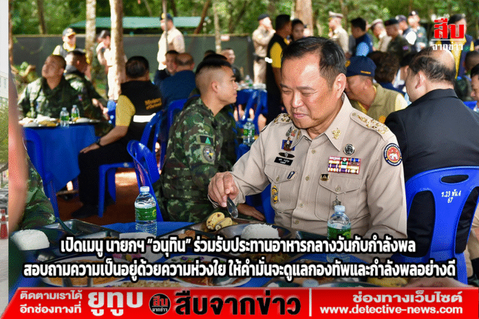 เวลา 14.00 น. วันที่ 3 ต.ค.68 ที่ฐานปฏิบัติการสามแยก กองพันทหารราบที่ 21 หน่วยเฉพาะกิจที่ 2 กองกำลังสุรนารี อำเภอพนมดงรัก จังหวัดสุรินทร์ นายอนุทิน ชาญวีรกูล นายกรัฐมนตรีและรัฐมนตรีว่าการกระทรวงมหาดไทย เดินทางไปตรวจภูมิประเทศและเยี่ยมให้กำลังใจกำลังพล พร้อมร่วมรับประทานอาหารกลางวันจากถาดหลุมกับกำลังพลในพื้นที่