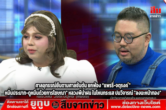 โจทก์ ฟ้องว่าเมื่อวันที่ 28 ก.ค.66 เวลากลางวันจำเลยทั้ง 10 ร่วมกันดูหมิ่นและหมิ่นประมาทใส่ความโจทก์โดยการโฆษณา จากการที่ทั้งสองได้ไปร่วมรายการโทรทัศน์ “โหนกระแส” จำเลยที่หนึ่งและสองได้พูดคุยและให้สัมภาษณ์รายการโหนกระแสในหัวข้อ“ แพรี่ฟาดกลับหลวงพี่น้ำฝน ปกป้องพระพยอม” ซึ่งบุคคลทั่วไปสามารถรับชมรายการดังกล่าวได้ทางสถานีโทรทัศน์ช่อง 3 เอชดี. หรือรับชมผ่านระบบออนไลน์ และมีการแสดงความคิดเห็นวิพากษ์วิจารณ์การทำพิธี “ลงนะหน้าทอง”
