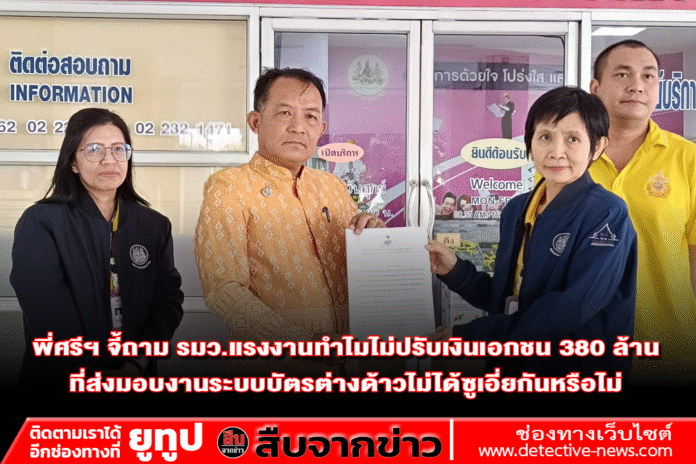 วันนี้ (6 ต.ค.68) เวลา 10.00 น. ที่กระทรวงแรงงาน เขตดินแดง นายศรีสุวรรณจรรยา ผู้นำองค์กรรักชาติรักแผ่นดิน ได้จะเดินทางไปยื่นหนังสือถึง น.ส.ตรีนุช เทียนทอง รมต.แรงงานคนใหม่ เพื่อขอให้ตรวจสอบโครงการฯจ้างจัดทำและต่อใบอนุญาตแรงงานต่างด้าวมูลค่า 7,950 ล้านบาท ซึ่งเลยกำหนดการส่งมอบงานมา 1 ปี 2 เดือนแล้ว แต่เอกชนคู้สัญญากับไม่สามารถส่งมอบงานได้ตามสัญญา และจะต้องถูกปรับเงินไม่ต่ำกว่า 380 ล้าน ทำไมกระทรวงแรงงานยังนิ่งเฉย