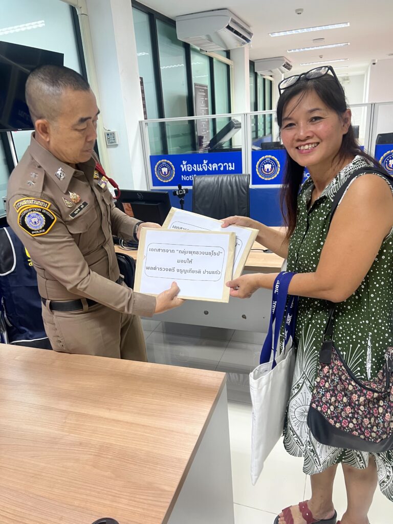 เมื่อเวลา 09.30 น. วันที่ 6 ต.ค. 68 ที่ ศูนย์รับแจ้งความ กองบัญชาการตำรวจสอบสวนกลาง (บช.ก.) นางยุพิน (สงวนนามสกุล) และ และ นางแหม่ม (สงวนนามสกุล) ตัวแทนสมาคมพุทธวจนในยุโรป และนายนายนิวัติ (สงวนนามสกุล) ได้เดินทางมายื่นเอกสารหลักฐานเกี่ยว กับข้อมูลส่วนตัวเกี่ยวกับจัดงานที่ยุโรป ให้กับ พล.ต.ต.จรูญเกียรติ ปานแก้ว รอง ผบช.ก. โดยมีพนักงานสอบสวน บก.ปปป.เป็นผู้รับแทน