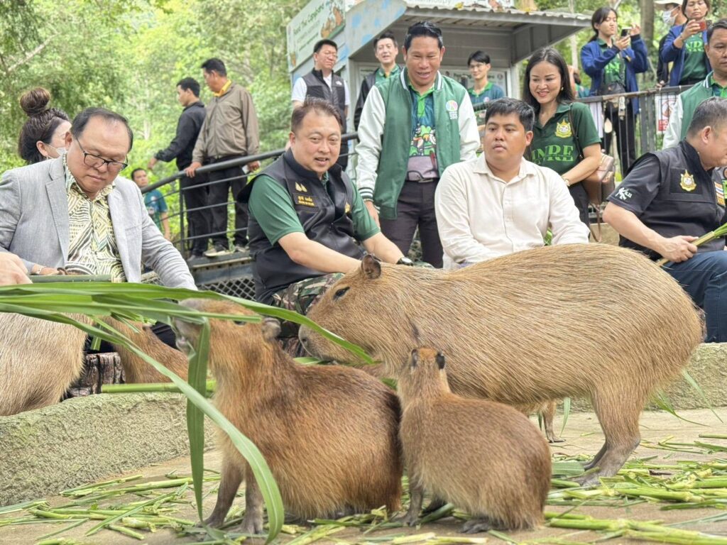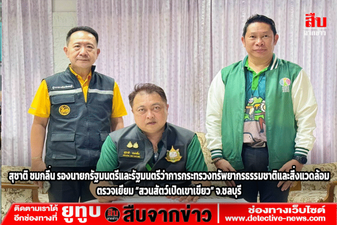 วันนี้ (6 ตุลาคม 2568) เวลา 11.00 น. นายสุชาติ ชมกลิ่น รองนายกรัฐมนตรีและรัฐมนตรีว่าการกระทรวงทรัพยากรธรรมชาติและสิ่งแวดล้อม พร้อมด้วย นายนริศ นิรามัยวงศ์ ผู้ว่าราชการจังหวัดชลบุรี และคณะผู้บริหารหน่วยงานใน ทส. ลงพื้นที่ตรวจเยี่ยมการดำเนินงานสวนสัตว์เปิดเขาเขียว ซึ่งอยู่ภายใต้การกำกับดูแลขององค์การสวนสัตว์แห่งประเทศไทย โดยมีนายณรงวิทย์ ชดช้อย ผู้อำนวยการสวนสัตว์เปิดเขาเขียว พร้อมด้วยคณะผู้บริหารและเจ้าหน้าที่ ให้การต้อนรับและนำเยี่ยมชมพื้นที่จัดแสดงสัตว์ต่าง ๆ อาทิ ส่วนจัดแสดงฮิปโปโปเตมัสแคระ “หมูเด้ง” ขวัญใจมหาชน หนูยักษ์คาปิบาราเกาะลีเมอร์ และช้างว่ายน้ำแห่งเดียวในประเทศไทย