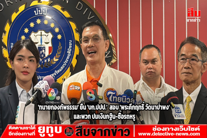 ทนายอนันต์ชัย ไชยเดช ประธานมูลนิธิทนายกองทัพธรรม พร้อมคณะ เดินทางเข้ายื่นหนังสือต่อ พลตำรวจตรีจรูญเกียรติ ปานแก้ว รองผู้บัญชาการตำรวจสอบสวนกลาง (บช.ก.) ที่กองบังคับการปราบปรามการทุจริตและประพฤติมิชอบ (บก.ปปป.) วันนี้ (7 ตุลาคม 2568) เวลา 10.00 น. เพื่อขอให้ตรวจสอบ พระคึกฤทธิ์ สวัสดิผล (โสตฺถิผโล) เจ้าอาวาสวัดนาป่าพง และพวกรวม 13 คน ในประเด็นเกี่ยวกับการบริหารจัดการเงินของวัด ประเด็นการตรวจสอบหลัก ทนายอนันต์ชัยได้ร้องขอให้ตรวจสอบ 3 ประเด็นหลัก ประกอบด้วย คือ