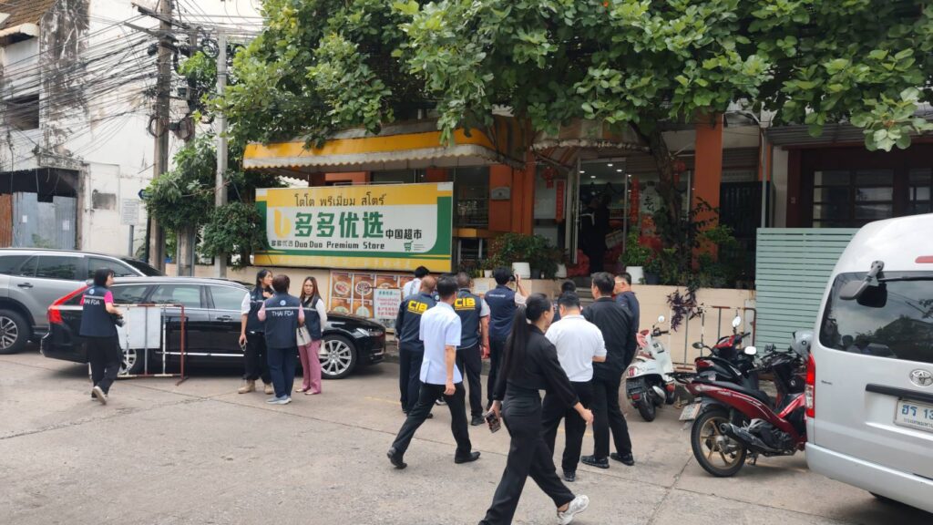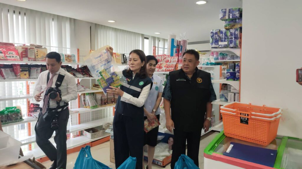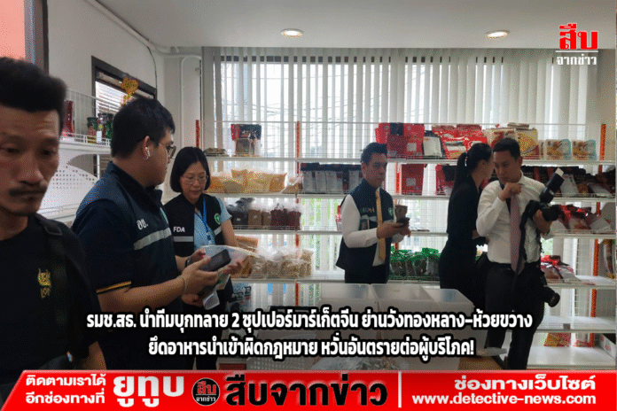 วันที่ 7 ต.ค. 68 นายวรโชติ สุคนธ์ขจร รัฐมนตรีช่วยว่าการกระทรวงสาธารณสุข (รมช.สธ.) พร้อมด้วยคณะทำงานจากสำนักงานคณะกรรมการอาหารและยา (อย.) และกองบังคับการปราบปรามการกระทำความผิดเกี่ยวกับการคุ้มครองผู้บริโภค (ป.คบ.) ลงพื้นที่ปฏิบัติการตรวจค้นซุปเปอร์มาร์เก็ตจีน 2 แห่ง ซึ่งเข้าข่ายนำเข้าและจำหน่ายผลิตภัณฑ์อาหารจากประเทศจีนอย่างผิดกฎหมาย โดยร้านแรกตั้งอยู่ในพื้นที่ วังทองหลาง และร้านที่สองในพื้นที่ เขตห้วยขวาง สามารถตรวจยึดของกลางเป็นอาหารสำเร็จรูปและขนมขบเคี้ยวจำนวนมาก เพื่อนำไปตรวจสอบหาสารปนเปื้อนและดำเนินคดีตามกฎหมายทันที