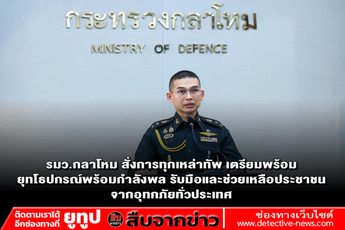 เมื่อวันที่ 8 ต.ค.68 ที่กระทรวงกลาโหม พ.อ.วีรยุทธ์ น้อมศิริ รองโฆษกกระทรวงกลาโหม เปิดเผยว่า พล.อ.ณัฐพล นาคพาณิชย์ รมว.กลาโหม ได้สั่งการให้ ศูนย์บรรเทาสาธารณภัยกระทรวงกลาโหม (ศบภ.กห.) และเหล่าทัพ เตรียมความพร้อมกำลังพล ยุทโธปกรณ์ และเครื่องมือพิเศษ เพื่อให้ความช่วยเหลือประชาชนที่ได้รับผลกระทบจากสถานการณ์อุทกภัยในหลายพื้นที่ของประเทศ