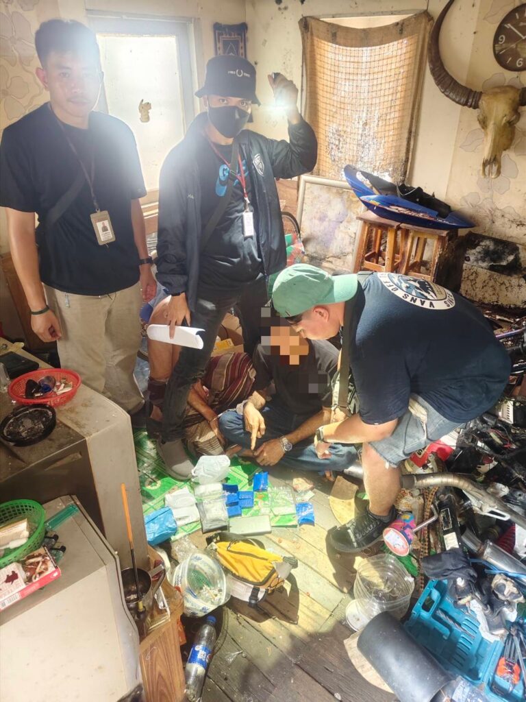 จนกระทั่งมาถึงเพิงพักต้องสงสัยภายในชุมชนวังใหญ่ เจ้าหน้าที่ได้กลิ่นยาเสพติดลอยออกมา จึงเคาะประตูเรียก พบนายสมชายฯ ผู้ถูกจับที่ 1 ได้มาเปิดประตู และพบนายประสิทธิ์ฯ ผู้ถูกจับที่ 2 จึงขอทำการตรวจค้น ผู้ถูกจับที่ 1 พบยาบ้า 1231 เม็ด ยาไอซ์ 86.62 กรัม (รวมถุง) อยู่ที่กระเป๋ากางเกง, กระเป๋าคาดเอว, ข้างลำตัว ตรวจค้นผู้ถูกจับที่ 2 พบ ยาบ้า 47 เม็ด อยู่ข้างลำตัว