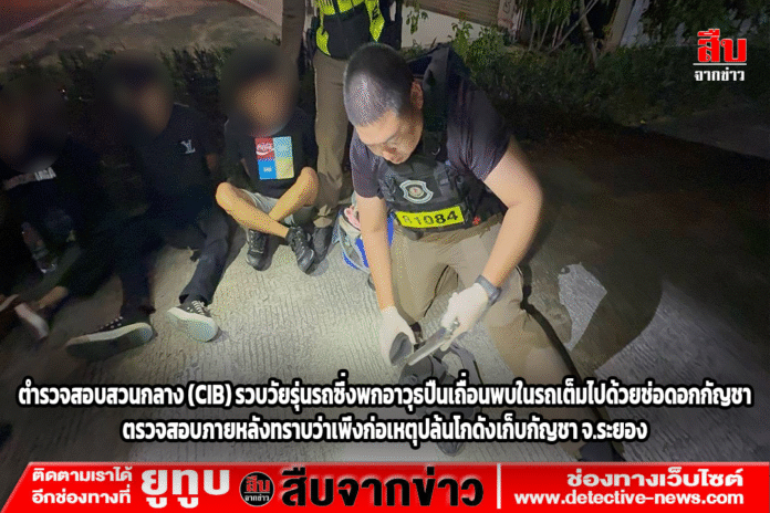 ทั้งนี้ จากการตรวจสอบเพิ่มเติมพบว่า ช่อดอกกัญชา ในถุงพลาสติกจำนวน 117 ถุง ซึ่งพบอยู่ในรถกระบะของผู้ต้องหานั้น กลุ่มผู้ต้องหาได้ก่อเหตุปล้นกัญชาจากโกดังเก็บกัญชาในพื้นที่ จ.ระยอง โดยสืบทราบว่าผู้เสียหายซึ่งเป็นเจ้าของโกดังได้เข้าเเจ้งความไว้ที่ สภ.บ้านฉาง จ.ระยอง ว่าเมื่อวันที่ 7 ต.ค.68 ช่วงเวลาประมาณ 02.00 น. ได้มีกลุ่มคนร้ายบุกเข้ามาที่โกดังของผู้เสียหาย ซึ่งขณะนั้นมีลูกจ้างชาวเมียนมาดูเเลโกดังอยู่ จากนั้นกลุ่มคนร้ายได้ใช้อาวุธปืนขู่บังคับลูกจ้างของผู้เสียหายให้อยู่นิ่งๆ ห้ามขัดขืน ก่อนที่กลุ่ม ผู้ต้องจะขโมยกัญชาที่เก็บรักษาไว้ประมาณ 100 กก. หลบหนีไป