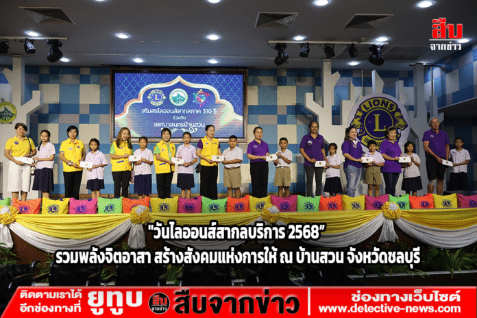 วันนี้(8 ตุลาคม 2568) เวลา 09:00 น. เทศบาลนครบ้านสวนร่วมกับสโมสรไลออนส์สากล ภาค 310 ซี จัดงาน “วันไลออนส์สากลบริการ” (Lions Service Day 2025) ณ ศาลาประชาคมเทศบาลนครบ้านสวน อำเภอเมือง จังหวัดชลบุรี โดยมี นายนริศ นิรามัยวงศ์ ผู้ว่าราชการจังหวัดชลบุรี เป็นประธานเปิดงาน พร้อมด้วย นายฉัตรชัย อั้งลิ้ม นายกเทศมนตรีนครบ้านสวน และคณะผู้บริหาร สมาชิกสภาเทศบาล รวมถึงตัวแทนสโมสรไลออนส์จากทั่วภาค 310 ซี เข้าร่วมอย่างคับคั่ง