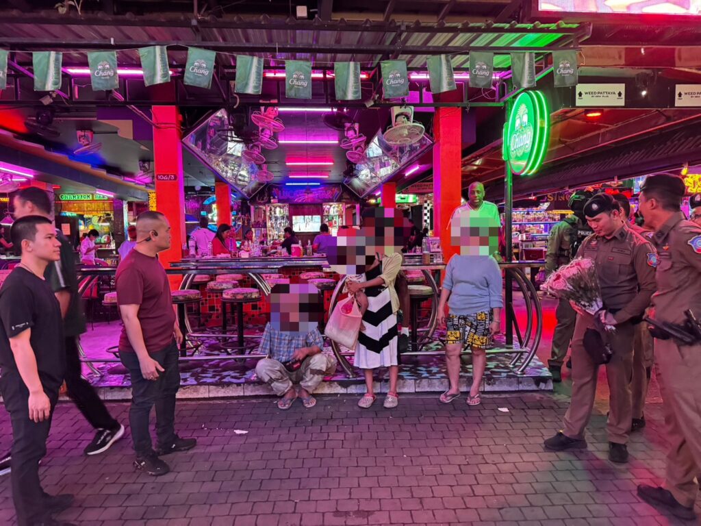 สถานที่ ถนนวอล์คกิ้งสตรีท พัทยาใต้ อำเภอบางละมุง จังหวัดชลบุรี เวลา 04.00 น. วันที่ 8 ตุลาคม 2568 อำนวยการโดย พ.ต.อ.อเนก สระทองอยู่ ผกก.สภ.เมืองพัทยา