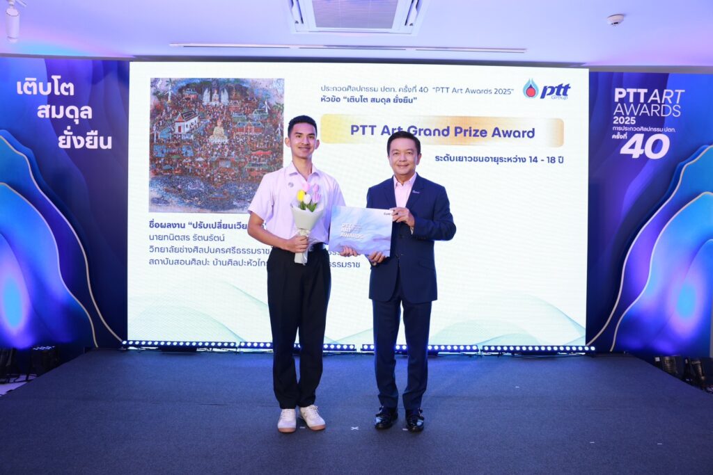 “…40 ปีแห่งการเดินทางของเวทีศิลปกรรมที่ทรงอิทธิพลที่สุดในไทย “PTT Art Awards” โดย ปตท. ไม่ได้เป็นเพียงการประกวดงานศิลปะ แต่คือเวทีที่ผลักดันความฝัน จุดประกายพลังสร้างสรรค์ และเปิดโอกาสให้ศิลปินไทยทุกวัยก้าวสู่การยอมรับในระดับชาติและนานาชาติ ปีนี้ ปตท. จัดใหญ่! เพิ่มรางวัลพิเศษ ครบ 40 รางวัล ตอกย้ำความมุ่งมั่นในการสนับสนุน Soft Power ศิลปะไทยให้ก้าวไกลอย่างยั่งยืน…”