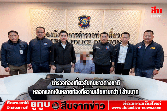 ภายใต้การอำนวยการ พล.ต.ท.ศักย์ศิรา เผือกอ่ำ ผบช.ทท. พร้อมด้วยพล.ต.ต.พงษ์สยาม มีขันทอง รอง ผบช.ทท., พล.ต.ต.กฤษณ์ วาฤทธิ์ รอง ผบช.ทท.,พล.ต.ต.ม.ล.สันธิกร วรวรรณ รอง ผบช.ทท.,พล.ต.ต.ดนุ กล่ำสุ่ม ผบก.ทท.1 , พ.ต.อ.มนพร ลิขิตมานนท์ ผกก.3 บก.ทท.1 แถลงผลการปฏิบัติงาน ” ตำรวจท่องเที่ยว กก.3 บก.ทท.1 “ตำรวจท่องเที่ยวจับกุมชาวต่างชาติหลอกแลกเงินหลายท้องที่ความเสียหายกว่า 1 ล้านบาท” หลังตะเวนก่อเหตุในหลายพื้นที่