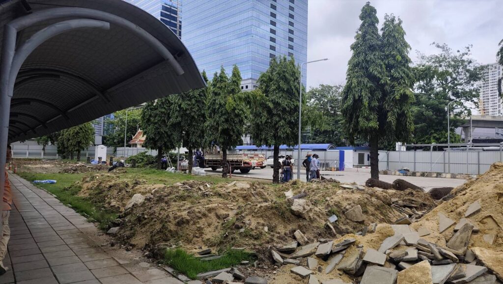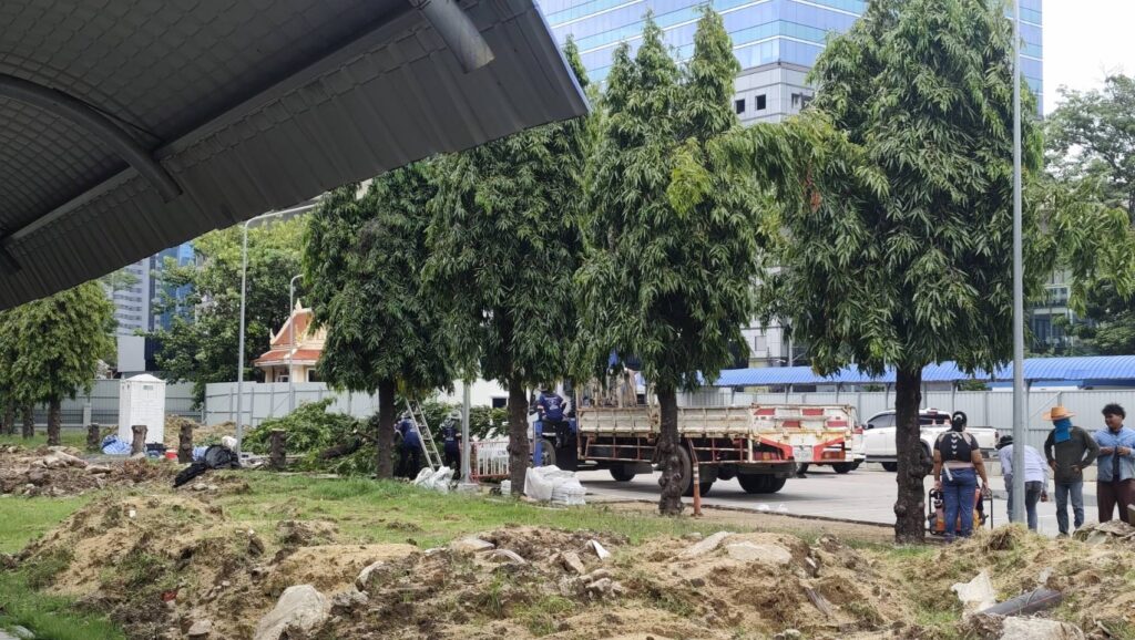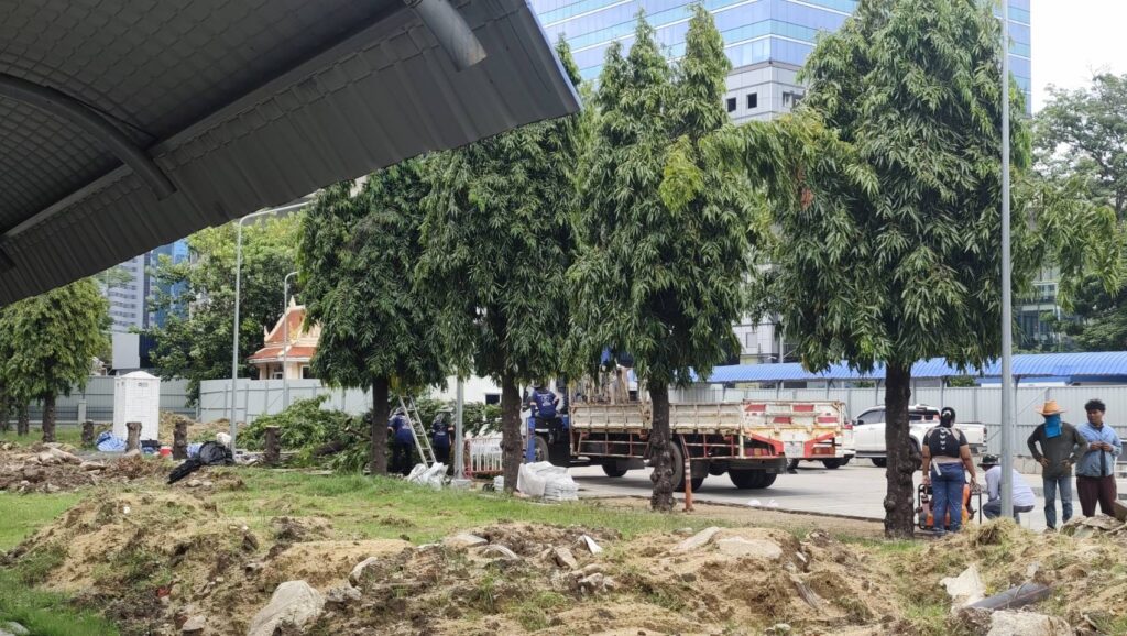 พื้นที่ดังกล่าวซึ่งปกติเป็นลานจอดรถสำหรับผู้มาติดต่อราชการ ถูกล้อมรั้วและติดตั้งป้ายแจ้ง “งานก่อสร้าง โครงการงานปรับปรุงถนน และภูมิทัศน์ กองบัญชาการตำรวจสอบสวนกลาง” ดำเนินการโดยบริษัทเอกชนแห่งหนึ่ง ด้วย งบประมาณ 49,480,800 บาท และมีระยะเวลาก่อสร้าง 180 วัน