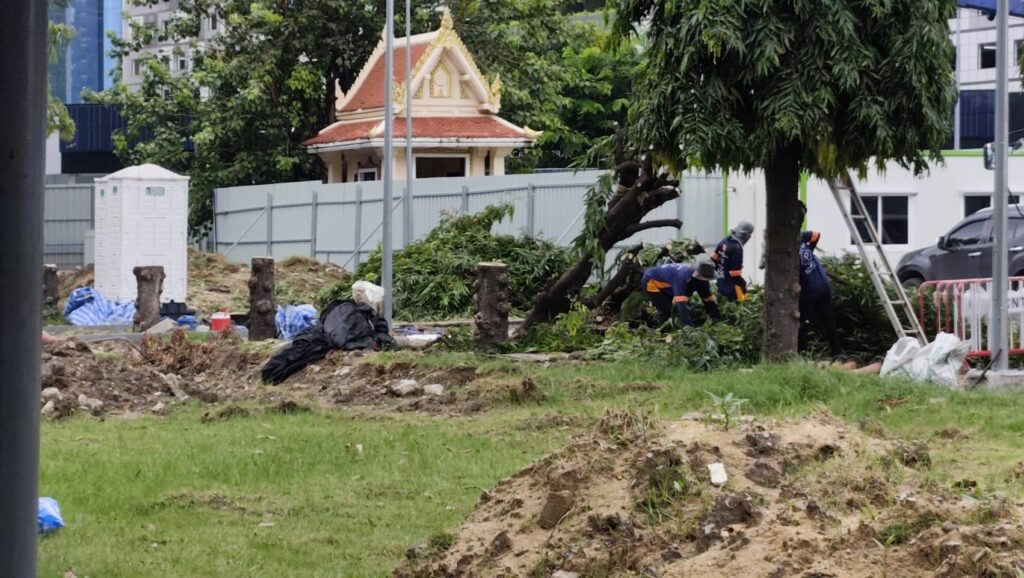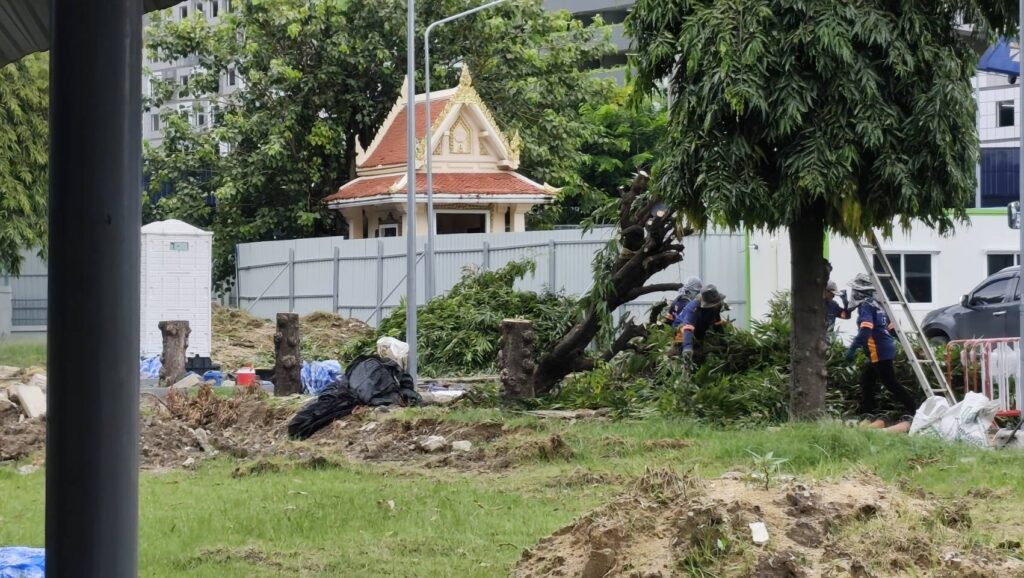 ล่าสุด วันนี้ (9 ต.ค.) ได้มีการดำเนินการที่สร้างความรู้สึกเสียดายแก่ผู้พบเห็น คือการ ตัดโค่นต้นอโศกอินเดีย (หรืออโศกเซนต์คาเบรียล) ที่ปลูกเรียงรายเป็นแนวรั้วด้านหน้าลานจอดรถจนหมดสิ้น