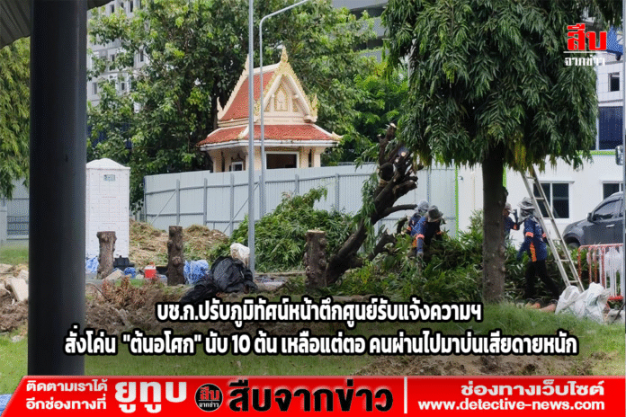 ต้นอโศกเหล่านี้เป็นต้นไม้ขนาดใหญ่ มี เส้นรอบวงกว่า 30 นิ้ว และมีจำนวนรวม กว่า 10 ต้น ซึ่งเป็นร่มเงาและสร้างความร่มรื่นให้กับบริเวณนี้มานานกว่า 10 ปี การตัดโค่นต้นไม้อย่างรวดเร็วและทิ้งไว้แต่ตอ ได้ทำให้ข้าราชการและประชาชนที่เดินทางผ่านไปมาต่างบ่นเป็นเสียงเดียวกันถึงความรู้สึก เสียดาย และตั้งคำถามว่า เหตุใดจึงไม่เลือกวิธีการขุดล้อมเพื่อย้ายไปปลูกยังที่อื่น แทนที่จะเลือกตัดโค่นทิ้งทั้งหมด