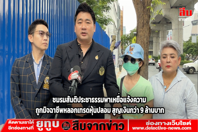 เมื่อเวลา 11.30 น. วันที่ 10 ต.ค.68 ที่ กองบัญชาการตำรวจสอบสวนกลาง อี้แทนคุณ ชมรมสันติประชาธรรม พร้อมด้วย คุณเก่ง สุเชษฐ์ ผู้ช่วยฯ พา น.ส.สมสกุล (นามสมมุติ) อายุ 62 ปี อดีตพนักงานบัญชี บริษัทเอกชนแห่งหนึ่ง ผู้เสียหาย เข้าแจ้งความต่อพนักงานสอบสวน บก.ปอศ. เพื่อดำเนินคดีกับ กลุ่มมิจฉาชีพ ที่หลอกลวงให้ร่วมลงทุนเทรดหุ้นผ่านช่องทางออนไลน์ จนเกิดความเสียหายมูลค่ารวมกว่า 9,000,000 บาท (เก้าล้านบาท) เป็นเงินเก็บจากหลังเกษียณ เป็นเงินจำนวน 6,000,000 กว่าบาท และยังได้ไปกู้ยืมเป็นหนี้สินอีกประมาณสามล้านบาท