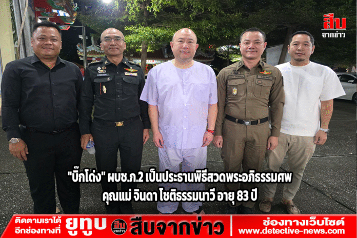 เวลา 19.30 น.วันที่ 9 ตุลาคม 2568 พล.ต.ท.ฉัตรชัย สุรเชษฐพงษ์ ผู้บัญชาการตำรวจภูธรภาค 2 เป็นประธานจุดธูปเทียนบูชาพระรัตนตรัย ในงานพิธีสวดพระอภิธรรมศพ คุณแม่ จินดา โชติธรรมนาวี อายุ 83 ปี มารดา นายพงศกร โชติธรรมนาวี (พี่บีเล้งกี่)