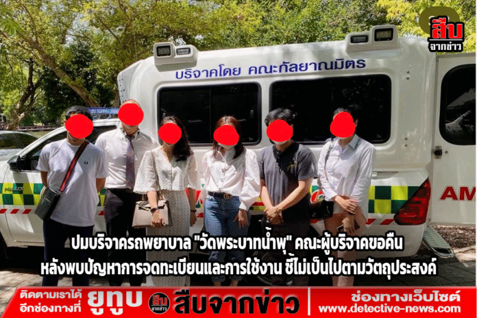 อย่างไรก็ตาม เมื่อสอบถามไปยังวัดพระบาทน้ำพุ กลับทราบว่า รถพยาบาลคันดังกล่าวยังมิได้ทำการจดทะเบียนตั้งแต่ปี พ.ศ. 2565 และถูกนำไปใช้เพื่อรับส่งผู้ป่วยโดยมิได้จดทะเบียน ซึ่งไม่เป็นไปตามวัตถุประสงค์ที่ต้องการให้เป็นรถฉุกเฉินที่สามารถช่วยชีวิตผู้ป่วยวิกฤติได้