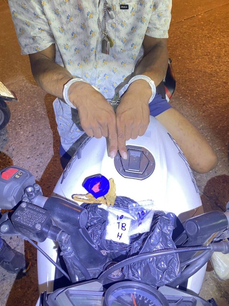 จังหวะที่ผู้ต้องหาทั้ง 2 รายกำลังจะส่งมอบยาเสพติด เจ้าหน้าที่ซึ่งซุ่มสังเกตการณ์อยู่จึงแสดงตัวเข้าชาร์จและจับกุมได้ทันควัน จากการตรวจค้นอย่างละเอียด พบของกลางจำนวนมากถูกซุกซ่อนไว้อย่างแนบเนียนในช่องถังน้ำมันของรถจักรยานยนต์ และจากการขยายผลยังพบของกลางเพิ่มเติมอีกหลายรายการ ประกอบด้วย: