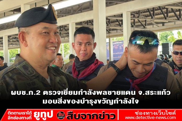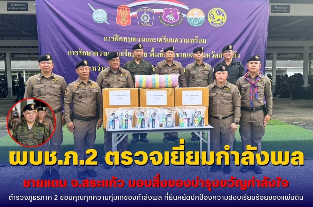 ผู้บัญชาการตำรวจภูธรภาค 2 นำคณะผู้บังคับบัญชาระดับสูงลงพื้นที่ตะเข็บชายแดนไทย-กัมพูชา ตรวจเยี่ยมกองร้อยควบคุมฝูงชน พร้อมมอบสิ่งของบำรุงขวัญ ชื่นชมความเสียสละในการปฏิบัติหน้าที่อย่างเข้มแข็งเพื่อปกป้องอธิปไตยของชาติ
