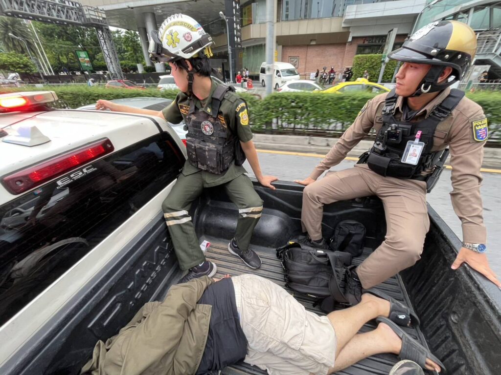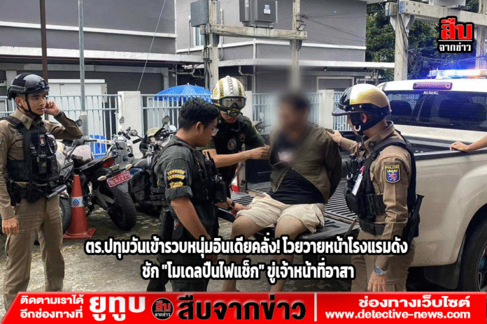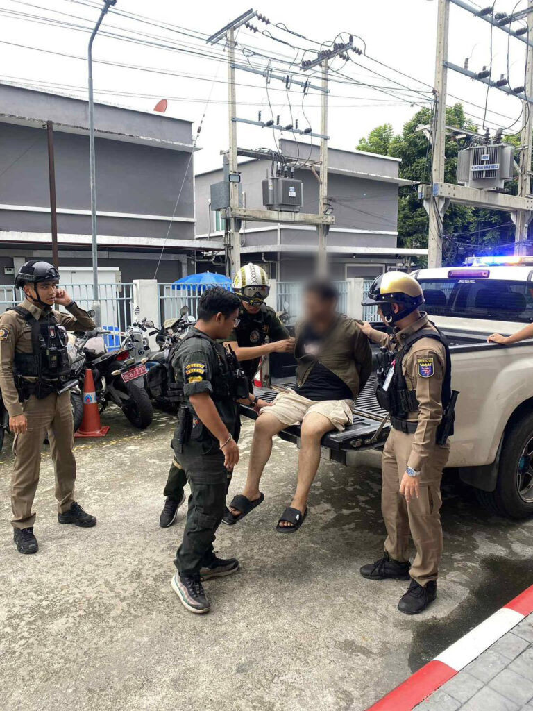 เมื่อเจ้าหน้าที่อาสาตำรวจฯ เข้าไปควบคุมสถานการณ์และเชิญตัวชายคนดังกล่าวออกจากพื้นที่ Mr. XXX สัญชาติอินเดีย ซึ่งเป็นผู้ก่อเหตุ ไม่ให้ความร่วมมือ และได้แสดงท่าทีข่มขู่เจ้าหน้าที่อาสาฯ โดยการ ชักโมเดลอาวุธปืนลักษณะเป็นพวงกุญแจไฟแช็ก ออกมาข่มขู่ ทำให้เจ้าหน้าที่เกรงว่าจะเกิดอันตรายแก่ประชาชนโดยรอบ จึงได้เข้าควบคุมตัวไว้