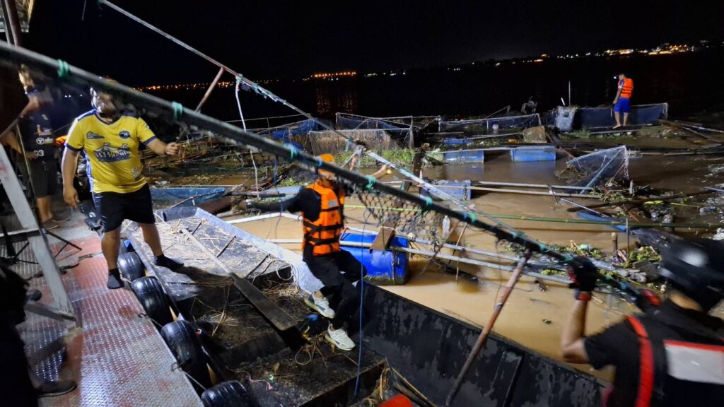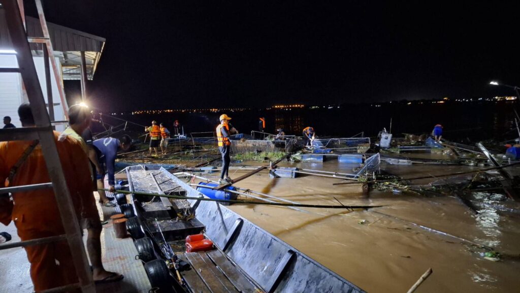 เจ้าหน้าที่ได้ประสานหน่วยป้องกันและบรรเทาสาธารณภัยเข้าเก็บกู้ แต่เนื่องจากกระแสน้ำยังแรงมาก ขณะนี้จึงยังไม่สามารถเก็บกู้ได้ทั้งหมด เบื้องต้นได้ถอดหลุมกระชังปลาออกและตัดตัวแพบางส่วนเพื่อลดน้ำหนักและแรงต้านน้ำ เพื่อป้องกันความเสียหายเพิ่มเติม
