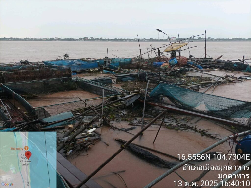 เมื่อเวลา 18.16 น. ศูนย์รับแจ้งเหตุป้องกันและบรรเทาสาธารณภัยเทศบาลเมืองมุกดาหาร ได้รับแจ้งจากเจ้าหน้าที่สถานีตำรวจน้ำมุกดาหาร ว่าเกิดเหตุกระชังปลานิลของเกษตรกรริมแม่น้ำโขงขาดและไหลไปตามกระแสน้ำ ก่อนจะชนและติดค้างอยู่ที่แพเก็บเรือตรวจการณ์ของสถานีตำรวจน้ำ