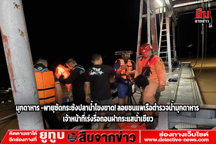 นายอดุลย์ ศิริมันต์ หัวหน้าฝ่ายป้องกันและบรรเทาสาธารณภัยเทศบาลเมืองมุกดาหาร นำกำลังเจ้าหน้าที่เข้าช่วยเหลือเร่งด่วน โดยรื้อถอนหลุมกระชังออกเพื่อลดน้ำหนักและแรงต้าน พร้อมติดตั้งไฟส่องสว่างให้เจ้าหน้าที่สามารถปฏิบัติงานได้ในช่วงกลางคืนอย่างปลอดภัย