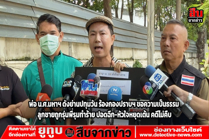 เมื่อเวลา 10.30 น. วันที่ 14 ต.ค. 68 นายคม (นามสมมุติ) อายุ 53 ปี บิดาของ “น้องพีท” (สงวนชื่อ-นามสกุล) นักศึกษาชายชั้นปีที่ 1 สาขาการจัดการการก่อสร้าง มหาวิทยาลัยชื่อดังย่านปทุมวัน พร้อมด้วย นายธมะนันท์ แตงทิม หรือ จ่าคิงส์ ผู้ก่อตั้งเพจจ่าคิงส์ แตงทิม และทีมงาน ได้นำหลักฐานกล้องวงจรปิดและใบแจ้งความ เข้าร้องเรียนต่อพนักงานสอบสวน กองบังคับการปราบปราม (บก.ป.) ที่ศูนย์รับแจ้งความ กองบัญชาการตำรวจสอบสวนกลาง เพื่อขอให้ช่วยเร่งรัดติดตามความคืบหน้าคดี หลังบุตรชายถูกรุ่นพี่ร่วมสถาบันรุมทำร้ายจนบาดเจ็บสาหัส ต้องพักรักษาตัวในห้อง ICU เนื่องจากปอดฉีกขาดและหัวใจหยุดเต้นไปชั่วขณะ แต่คดีที่แจ้งความไว้ก่อนหน้านี้ยังไม่มีความคืบหน้า