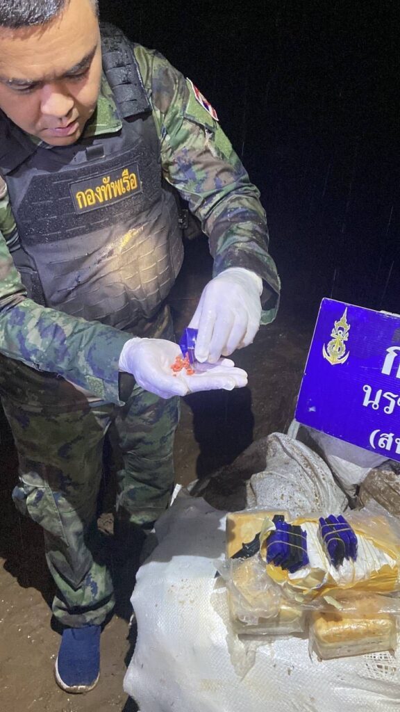 จึงจัดกำลังลาดตระเวนเฝ้าตรวจพื้นที่ดังกล่าว ต่อมาเวลา 2130 ตรวจพบเรือต้องสงสัย จำนวน 1 ลำ วิ่งเข้ามาจอดริมฝั่งแม่น้ำโขง (ฝั่งไทย) บริเวณพื้นที่ดังกล่าว พร้อมวางสิ่งของต้องสงสัย แล้วขับเรือกลับไปยังฝั่ง สาธารณรัฐประชาธิปไตยประชาชนลาว เจ้าหน้าที่จึงวางกำลังซุ่มเฝ้าตรวจบริเวณโดยรอบพื้นที่ดังกล่าว กระทั้งเวลา 23.30 น. ไม่มีบุคคลแสดงตัวเป็นเจ้าของ หรือเข้ามานำสิ่งของดังกล่าวออกไป จึงได้เข้าตรวจสอบสิ่งของภายในกระสอบสีขาวพบเป็นของกลางยาบ้า จำนวน 1 ล้านเม็ด