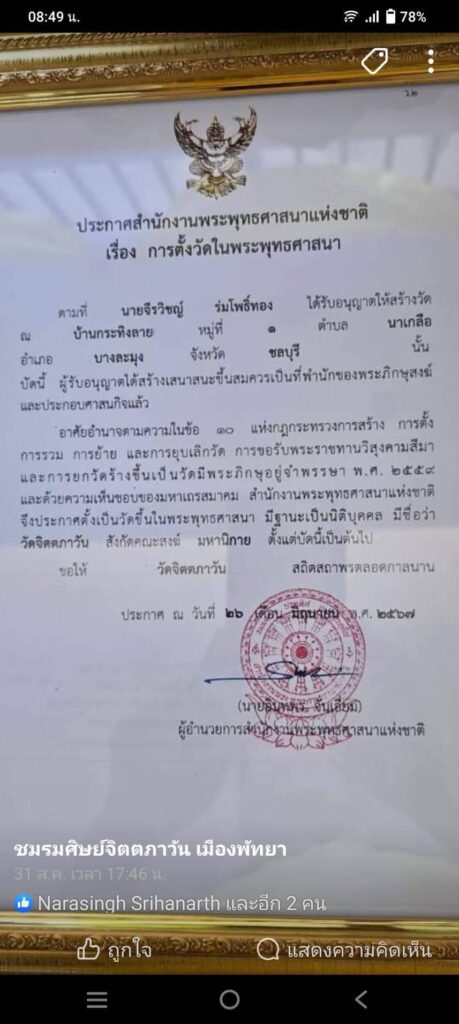 เมื่อวันที่ 15 ต.ค. 68 ที่ ศูนย์รับแจ้งความกองบัญชาการตำรวจสอบสวนกลาง น.ส.อณัญญา ยมนัตถ์ อายุ 57 ปี ผู้ดูแลบ้านพักอาศัยของคุณหญิงลำภู สิทธิสยามการ ข้าราชบริพานในพระองค์ ในรัชกาลที่ 9 และพระบรมราชชนนีพันปีหลวง ซึ่งตั้งอยู่ในพื้นที่ จิตตภาวันวิทยาลัย พร้อมนายกฤษณะรัญธน์ ภักดี ทนายความ รับมอบอำนาจจาก พระอาจารย์สิน โชติปัญโญ อายุ 85 ปี เข้าแจ้งความร้องทุกข์ต่อพนักงานสอบสวน กองบังคับการป้องกันปราบปรามการทุจริตและประพฤติมิชอบ(บก.ปปป.) ขอให้ตรวจสอบการขออนุญาตจัดตั้งวัดจิตตภาวัน ใน จ.ชลบุรี เมื่อปี 2567 ว่าถูกต้องหรือไม่อย่างไร