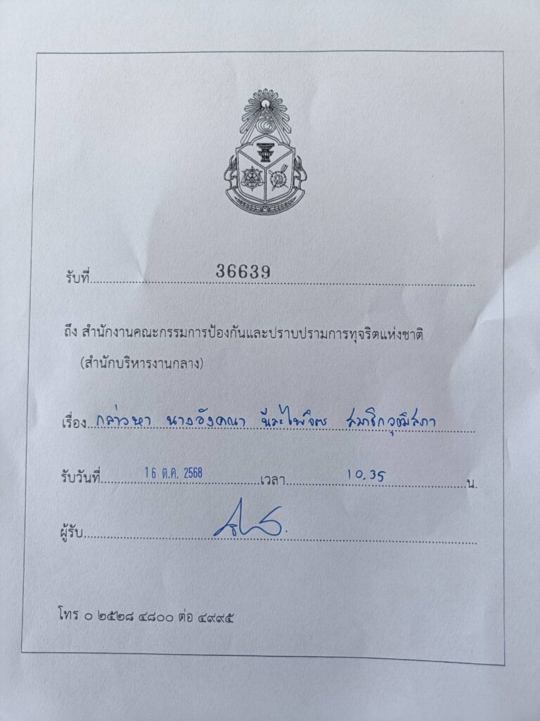 เวลา 10.00 น. วันที่ 16 ต.ค.68 ที่ สำนักงาน ป.ป.ช. จังหวัดนนทบุรี นายศรีสุวรรณ จรรยา ผู้นำองค์กรรักชาติ รักแผ่นดิน ได้เดินทางมายื่นคำร้องต่อ ป.ป.ช. เพื่อขอให้ไต่สวนและชี้มูลความผิด กรณีนางอังคณา นีละไพจิตร สมาชิกวุฒิสภา(สว.) ที่ได้โพสต์ข้อความและแสดงความไม่เห็นด้วยกับนายกัน จอมพลัง ในการเปิดเสียงผีให้ชาวกัมพูชาที่บ้านหนองจาน อาจเป็นการละเมิดสิทธิมนุษยชน ถือเป็นการข่มขวัญพลเรือนกัมพูชาอย่างร้ายแรงถึงขั้นเป็น “การทรมานทางจิตวิทยา” ขัดต่ออนุสัญญา CAT นั้น