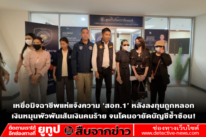 (16 ต.ค. 68) เวลา 13.00 น. ที่กองกำกับการ 1 กองบังคับการตำรวจสืบสวนสอบสวนอาชญากรรมทางเทคโนโลยี 1 (กก.1 บก.สอท.1) ชั้น 4 อาคารบี ศูนย์ราชการ ถนนแจ้งวัฒนะ กลุ่มผู้เสียหายกว่า 10 ราย ที่ประสบปัญหาถูกอายัดบัญชีธนาคาร จากกรณีถูกมิจฉาชีพหลอกให้ลงทุนและมีการโอนเงินพัวพันกับคนร้าย ได้เดินทางเข้าพบ พล.ต.ต.ศิริวัฒน์ ดีพอ ผบก.สอท.1 พ.ต.อ.รุ่งเลิศ คันธจันทร์ ผกก.1 บก.สอท.1 และพนักงานสอบสวน เพื่อแจ้งความดำเนินคดี พร้อมด้วย นายชณทัต ปีทะมะภูวดล แอดมินเพจเฟซบุ๊ก “ชณทัต ลุยครับ” ที่เข้ามาเป็นผู้ประสานงานช่วยเหลือ