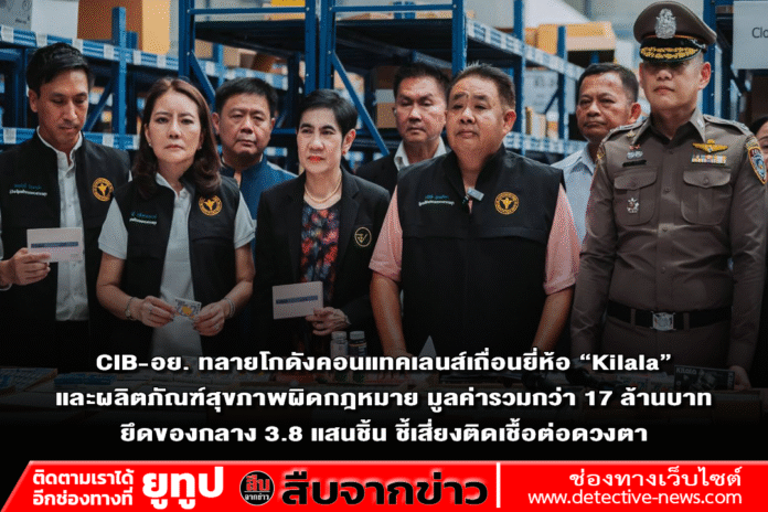 ตำรวจสอบสวนกลาง (CIB) โดย บก.ปคบ. ร่วมกับ สำนักงานคณะกรรมการอาหารและยา (อย.) แถลงผลการทลายแหล่งจัดเก็บและกระจายคอนแทคเลนส์และผลิตภัณฑ์สุขภาพผิดกฎหมายในพื้นที่ จ.สมุทรปราการ ยึดของกลางจำนวนมากถึง 385,070 ชิ้น มูลค่ากว่า 17.8 ล้านบาท เตือนภัยประชาชนระวังการซื้อสินค้าราคาถูกทางออนไลน์ เสี่ยงได้รับผลิตภัณฑ์ไม่ได้มาตรฐานและเป็นอันตรายต่อสุขภาพ