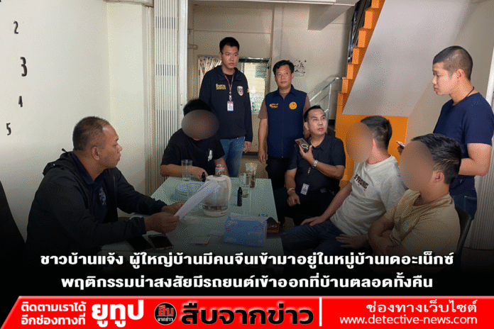 เมื่อเวลา 11.30 น. (16ต.ค.2568) นาย อภิชาติ นุ่นช่วย ผู้ใหญ่บ้านหมู่ที่ 3 ตำบลบ่อวิน อำเภอศรีราชา จังหวัดชลบุรีได้รับแจ้งจากประธานหมู่บ้านเดอะเน็กซ์ ว่าที่บ้านเลขที่340/41ม.3 ตำบลบ่อวินว่ามีกลุ่มคนจีนเข้ามาพักอยู่ในหมู่บ้านมีพฤติกรรมผิดปกติมีรถวิ่งเข้าออก ที่บ้านพักตลอดทั้งคืนเกรงว่าจะเป็นกลุ่มคนจีนเข้ามาอย่างผิดกฎหมายและอาจมาก่อเหตุบางอย่างหวั่นเป็นอันตรายกับประชาชนในหมู่บ้านหลังทราบ จึงได้ประสานไปยัง พ.ต.ท.สมคิด ยานะพันธ์ รอง ผกก.สส.สถานีตำรวจภูธรบ่อวิน ส่งเจ้าหน้าที่ตำรวจชุดสืบสวนสภ. บ่อวิน ออกมาร่วมตรวจสอบกับทางผู้นำท้องถิ่น จากการตรวจสอบบ้านหลังดังกล่าวที่รับแจ้ง โดยในบ้านไม่พบสิ่งผิดกฎหมาย มีเพียงเสื้อผ้าและที่นอนเพื่อพักอาศัย ตรวจสอบพบว่ามีหลักฐานมีเอกสารหลักฐานการเช่าบ้านและหนังสือเดินทางเข้า-ออกประเทศครบถ้วนทั้ง3คน จึงได้แจ้งให้ประธานหมู่บ้านและชาวบ้านให้ทราบ และคอยสังเกตการณ์พฤติกรรมของคนจีนกลุ่มนี้ต่อไป