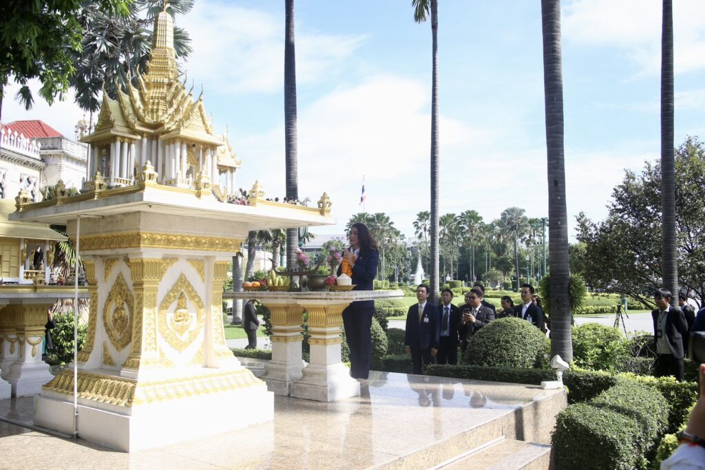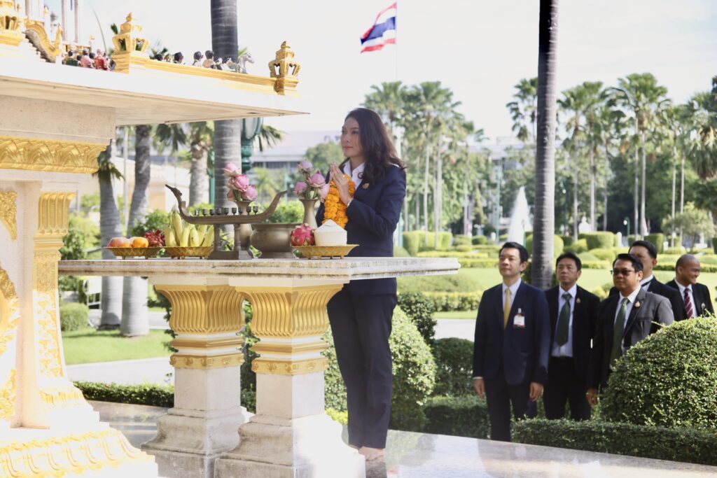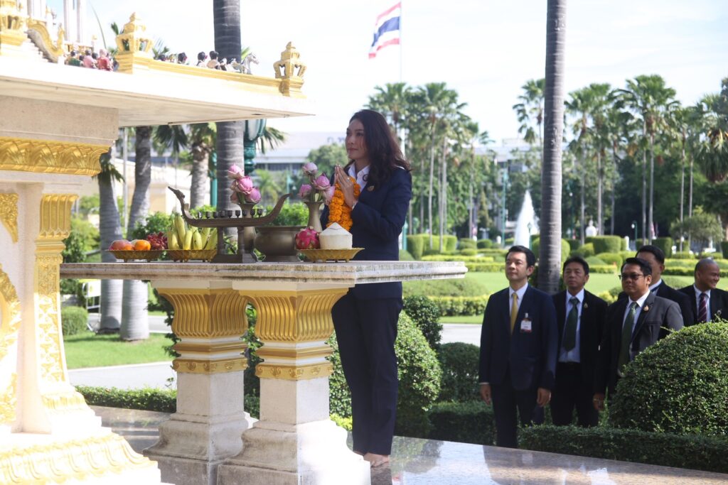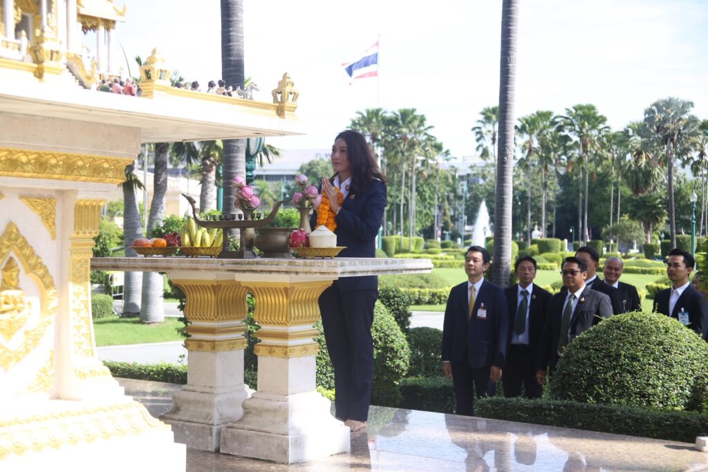 ทำเนียบ วันนี้ (17 ต.ค.) เวลา 09.33 น. น.ส.อัยรินทร์ พันธุ์ฤทธิ์ รองโฆษกประจำสำนักนายกรัฐมนตรี สักการะสิ่งศักดิ์สิทธิ์ประจำทำเนียบรัฐบาล หลังเข้ารับตำแหน่งรองโฆษกประจำสำนักนายกรัฐมนตรี พร้อมให้สัมภาษณ์กับสื่อมวลชนว่า จะใช้โอกาสนี้ในการสร้างผลงานที่เป็นประโยชน์ของรัฐบาลสู่พี่น้องประชาชน เป็นการสื่อสารที่เข้าใจง่าย ๆ เป็นโฆษกของคนรุ่นใหม่ที่ง่าย ๆ ตรงประเด็นชัดเจน ไม่เน้นการใช้ภาษาราชการ กระฉับกระเฉง รวดเร็ว ตรงใจพี่น้องประชาชน แล้วก็เป็นประโยชน์อย่างสูงสุด
