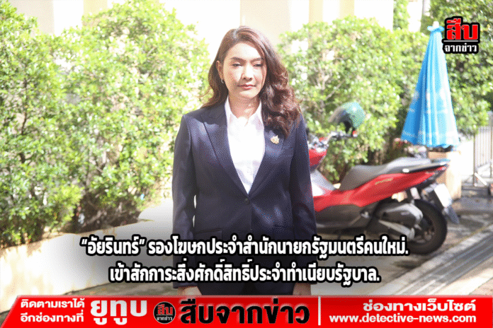 “อัยรินทร์” รองโฆษกประจำสำนักนายกรัฐมนตรีคนใหม่. เข้าสักการะสิ่งศักดิ์สิทธิ์ประจำทำเนียบรัฐบาล. หลังเข้ารับตำแหน่ง ประกาศเป็น “โฆษกของคนรุ่นใหม่” สื่อสารเข้าใจง่าย ตรงประเด็น และรวดเร็ว เพื่อให้ข้อมูลรัฐบาลเข้าถึงประชาชนอย่างมีประสิทธิภาพ