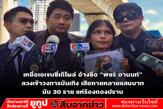 เมื่อเวลา 10.00 น. วันที่ 17 ต.ค.68 ที่ ศูนย์รับแจ้งความกองบัญชาการตำรวจสอบสวนกลาง นายแทนคุณ จิตต์อิสระ ประธานชมรมสันติประชาธรรม พร้อมด้วย นายอภิรุจ มิ่งขวัญตา หรือ “พชร์ อานนท์” ผู้กำกับชื่อดัง ได้นำกลุ่มผู้เสียหายเข้าแจ้งความต่อกองบังคับการปราบปราม (บก.ป.) หลังถูกบุคคลแอบอ้างชื่อ พชร์ อานนท์ หลอกลวงให้ร่วมงานในวงการบันเทิงและเสียทรัพย์สินรวมมูลค่าความเสียหายหลายแสนบาท มีผู้ตกเป็นเหยื่อกว่า 30 ราย