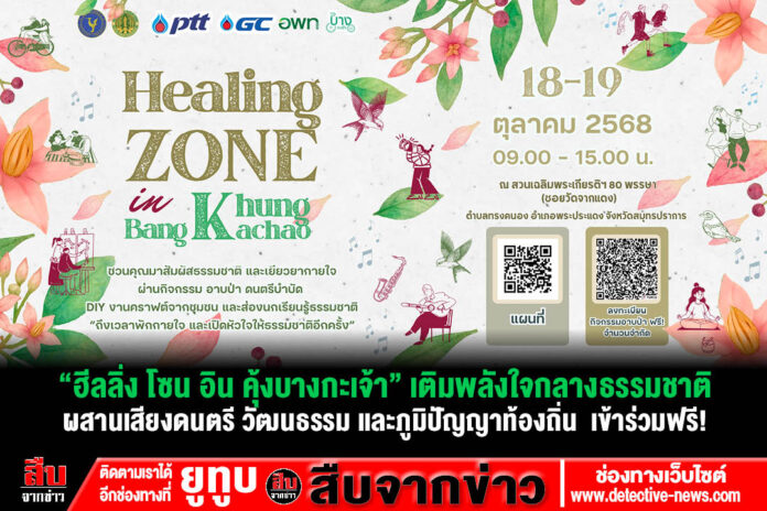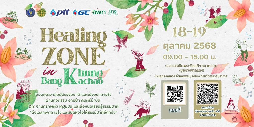 “…พักใจจากเมืองใหญ่ แล้วมาฮีลใจใกล้กรุง! ศูนย์เรียนรู้สวนเฉลิมพระเกียรติฯ 80 พรรษา คุ้งบางกะเจ้า ชวนสัมผัสประสบการณ์ท่องเที่ยวเชิงสุขภาพแนวใหม่ในงาน “ฮีลลิ่ง โซน อิน คุ้งบางกะเจ้า (Healing Zone in Khung Bang Kachao)” เปิดพื้นที่แห่งธรรมชาติ ดนตรี และวัฒนธรรม ให้ทุกคนได้ “อาบป่า” สูดอากาศบริสุทธิ์ ฟังดนตรีบำบัด และเรียนรู้ภูมิปัญญาท้องถิ่นอย่างใกล้ชิด — ทั้งหมดนี้ “เข้าร่วมฟรี ไม่มีค่าใช้จ่าย!”…”