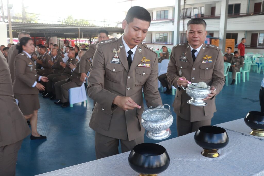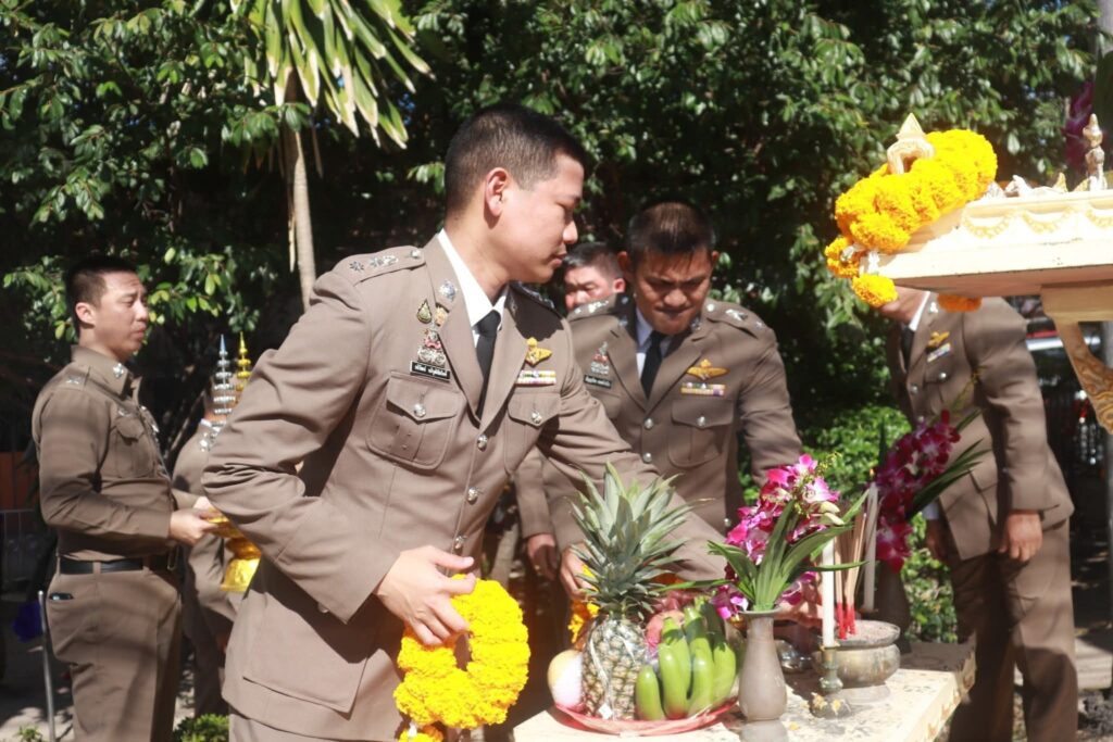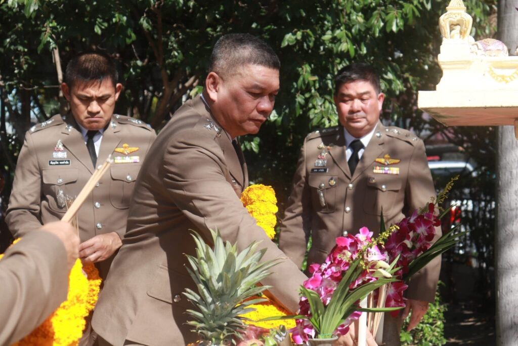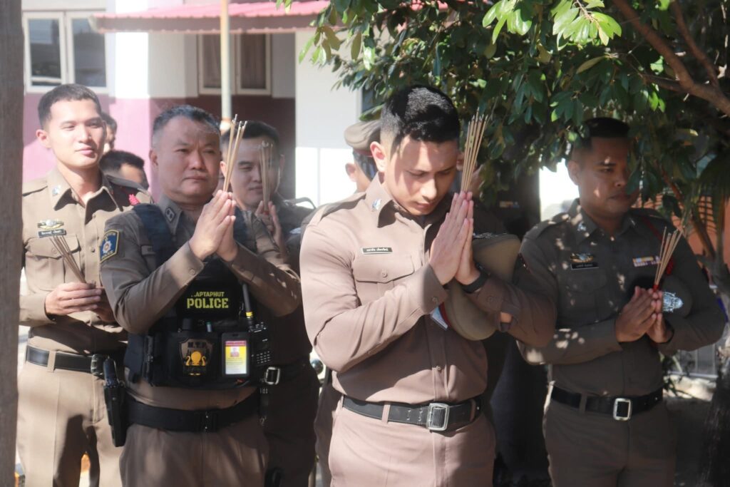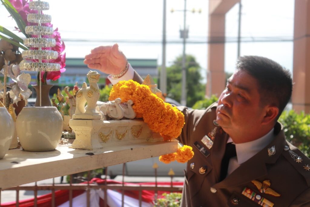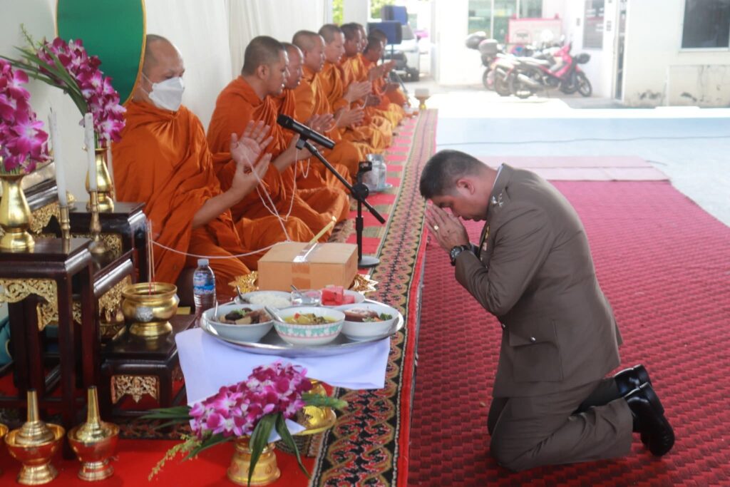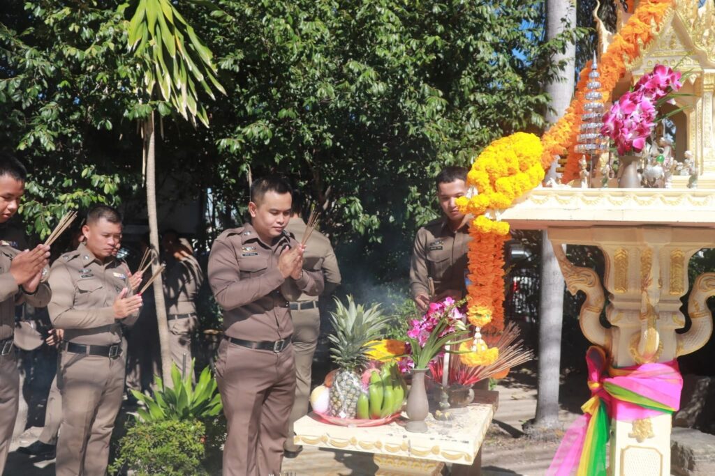 ต่อมา พ.ต.อ.ถาวร นาใจเย็น ได้นำข้าราชการตำรวจประกอบพิธีสักการะสิ่งศักดิ์สิทธิ์ประจำสถานีตำรวจภูธรมาบตาพุด เพื่อความเป็นสิริมงคล และปิดท้ายด้วยพิธีทำบุญเลี้ยงพระเพล เพื่ออุทิศส่วนกุศลและรำลึกถึงคุณงามความดีของข้าราชการตำรวจในสังกัดที่ได้ล่วงลับไปแล้ว