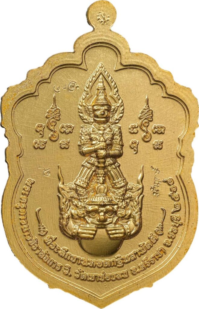 ลักษณะเหรียญด้านหน้าเป็นรูปหลวงปู่ฮกนั่งขัดสมาธิซ้อนทับด้วยรูปครึ่งองค์ของพระครูภาวนาวชิราลังการ วิ. ส่วนด้านหลังเป็นรูปท้าวเวสสุวรรณทรงราหู โดยมีการจัดสร้างหลายเนื้อหลายแบบ และตอกโค้ดพร้อมหมายเลขกำกับทุกเหรียญ