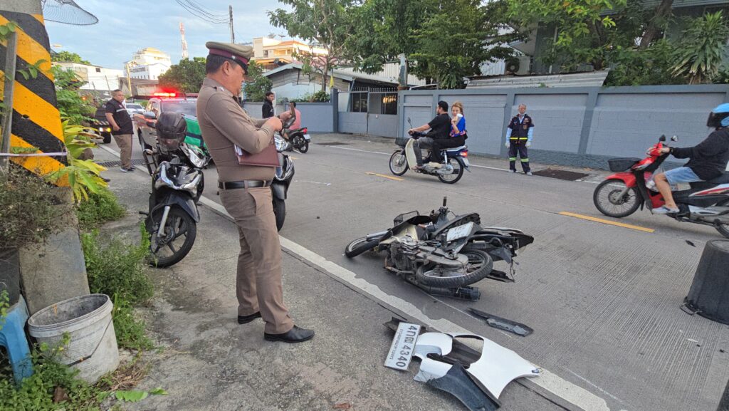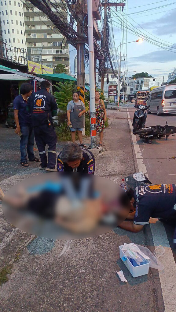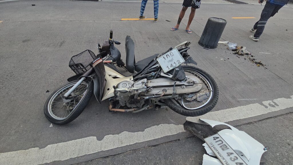 เมื่อเวลาประมาณ 06.00 น.ศูนย์วิทยุแจ้งเหตุหน่วยกู้ภัยสว่างประทีปศรีราชา จ.ชลบุรี ได้รับแจ้งเหตุรถจักรยานยนต์ถูกรถยนต์เก๋งชนท้าย มีผู้ได้รับบาดเจ็บสาหัส 1 ราย เหตุเกิดที่บริเวณถนนสาย 9 กิโล ก่อนถึงแยกตึกคอม หมู่ 3 ตำบลสุรศักดิ์ อำเภอศรีราชา จังหวัดชลบุรี จึงประสานรถพยาบาลกู้ชีพ “ลั่นทม” โรงพยาบาลสมเด็จพระบรมราชเทวี ณ ศรีราชา และ พ.ต.ท.สุชาติ เจริญศรี สารวัตรสอบสวน สภ.ศรีราชา เข้าร่วมตรวจสอบ