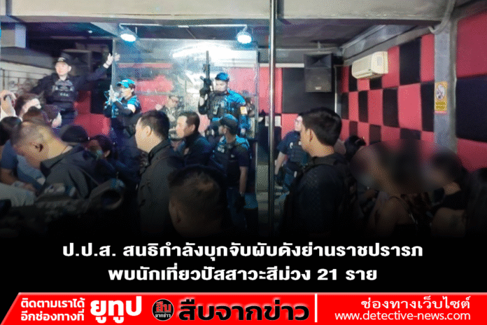 วันที่ 18 ตุลาคม 2568 เมื่อเวลา 05:00 น. เจ้าหน้าที่สำนักงานคณะกรรมการป้องกันและปราบปรามยาเสพติด พร้อมด้วยตำรวจสืบสวนตรวจคนเข้าเมือง 1 และฝ่ายกำลังข่าวกรองทหารบก ทหารเรือ,ตำรวจสน.ดินแดง นำกำลังเข้าตรวจสอบสถานบันเทิงแห่งหนึ่ง ภายในซอยราชปรารภ 14 พื้นที่เขตราชเทวี กรุงเทพมหานคร สถานที่มีลักษณะเป็นโรงแรมม่านรูด เข้าไปด้านในเปิดเป็นสถานบันเทิง หลังได้รับการร้องเรียนว่าเปิดเกินเวลา และมีการลักลอบใช้สารเสพติด