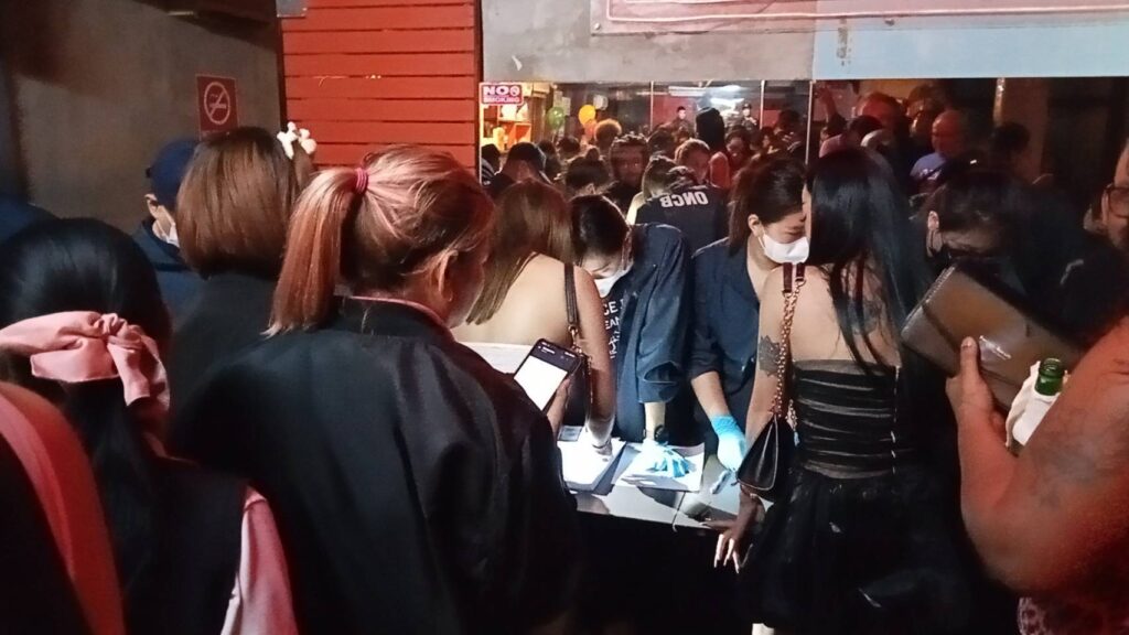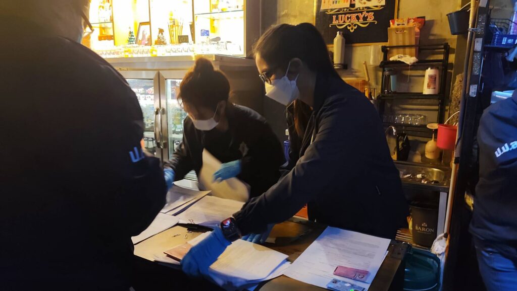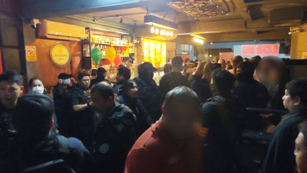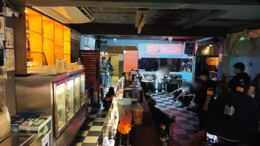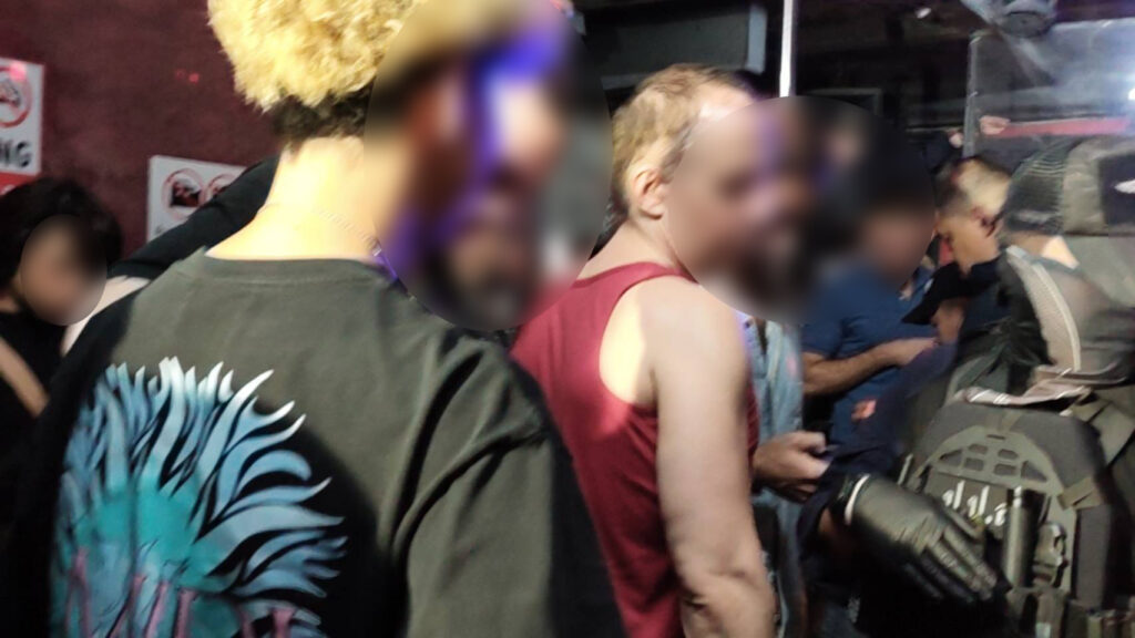 จากการตรวจค้น พบนักท่องเที่ยวชาวต่างชาติ ทั้งหญิงและชายกำลังดื่มกินอยู่ภายในร้านจำนวนมาก เจ้าหน้าที่จึงประกาศให้ทางร้านหยุดเปิดเพลงชั่วคราว และคัดแยกนักท่องเที่ยว พนักงานร้าน เพื่อตรวจสอบหนังสือเดินทาง พร้อมทั้งตรวจปัสสาวะหาสารเสพติด