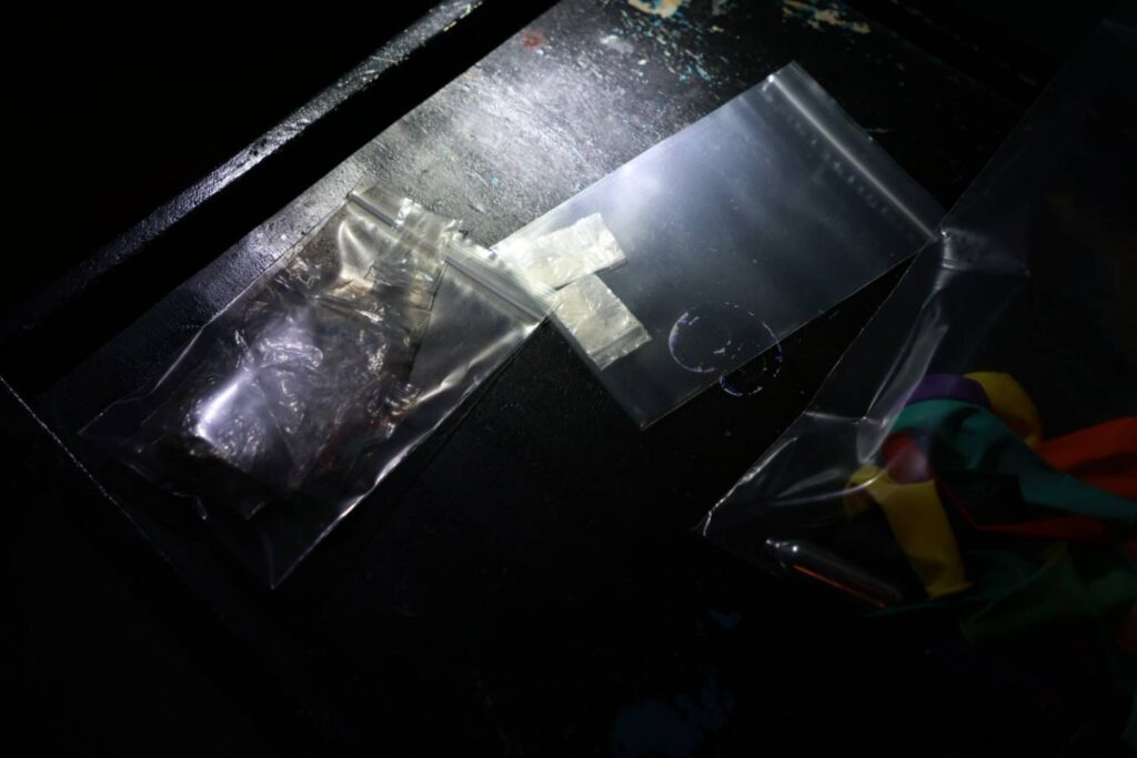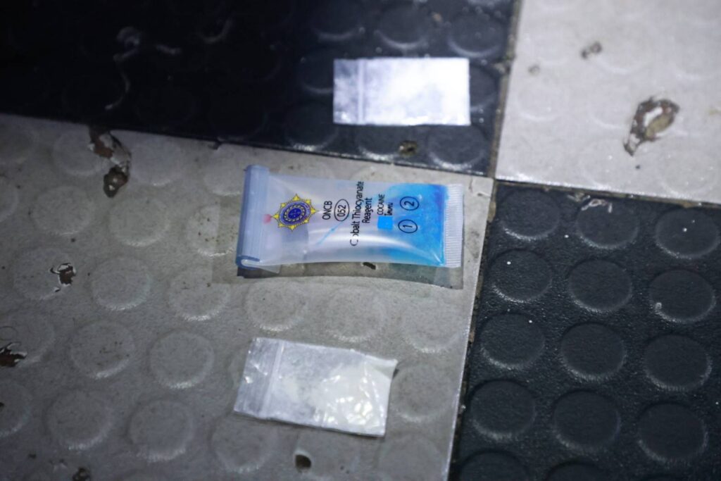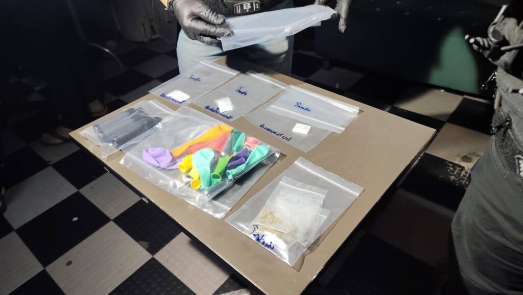 ในร้านยังพบยาเสพติดชนิดผง หรือโคเคนบรรจุอยู่ในถุงซิปล็อคตกอยู่บนพื้น เจ้าหน้าที่จึงเก็บไว้เป็นหลักฐาน จากการตรวจหาสารเสพติด นักท่องเที่ยว และพนักงานกว่า 100 คน พบชาวต่างชาติปัสสาวะสีม่วง 11 คน และคนไทย 10 คน เจ้าหน้าที่ควบคุม เจ้าหน้าที่จึงได้ควบคุมไปดำเนินคดี