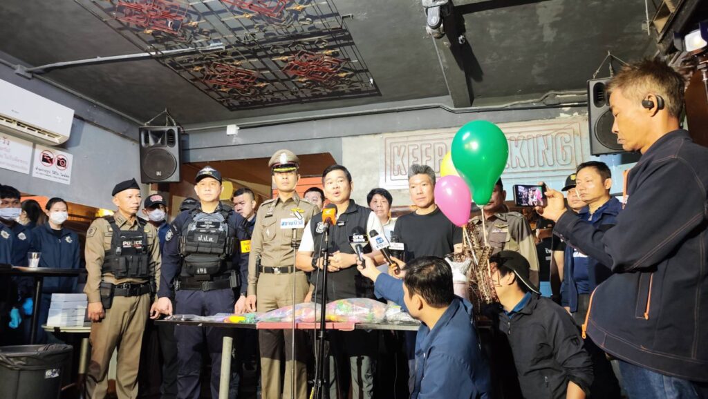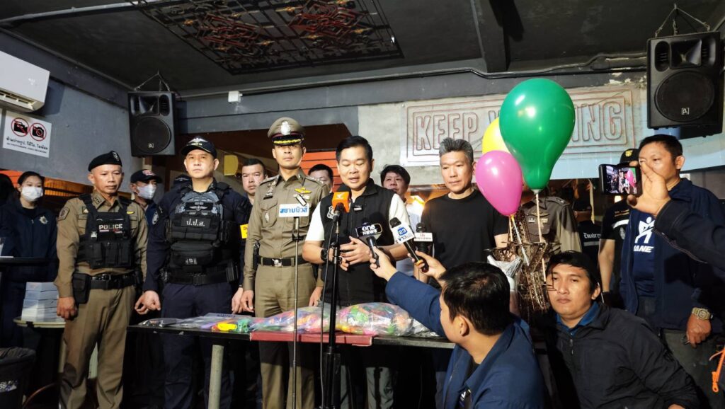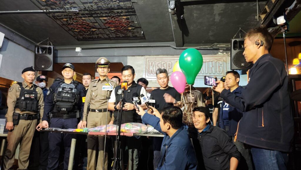 พันตำรวจตรีสุริยา สิงหกมล เลขาธิการ ป.ป.ส. เปิดเผยว่า เจ้าหน้าที่ ป.ป.ส.ได้สืบสวนติดตามผู้ต้องหาชาวต่างชาติคนหนึ่ง มีพฤติการณ์ลักลอบนำยาเสพติดมาจำหน่ายให้กับนักท่องเที่ยวภายในสถานบันเทิงแห่งนี้ จึงขยายผลเข้าตรวจสอบ โดยร้านนี้พบว่าเปิดให้บริการมานานกว่า 1 ปี เจ้าหน้าที่ยังพบว่า ทางร้านลักลอบจำหน่ายยาเสพติด ทั้งบุหรี่ไฟฟ้า กัญชา แก๊สหัวเราะ แต่จากการสอบถามเจ้าของร้าน ให้การปฏิเสธเกี่ยวข้องกับยาเสพติด