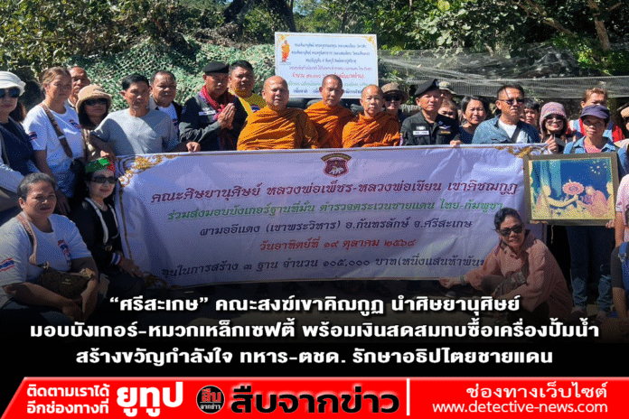 เมื่อวันที่ 19 ตุลาคม 2568 ผู้สื่อข่าวรายงานว่า พระครูปลัดสิทธิชัย วิสุทโธ เจ้าอาวาสวัดกระทิง พร้อมด้วย พระครูสุธรรมวิริยา ลังการณ์ เจ้าอาวาสวัดตะเคียนทอง , พระอธิการสวน อภิวัฒน์ธโณ รองเจ้าอาวาสวัดเทพประทานพร พร้อมด้วยศิษยานุศิษย์ชาว อ.เขาคิชฌกูฏ จ.จันทบุรี ได้นำตู้เย็น พร้อมด้วย อาหาร ผลไม้ จากจันทบุรี มามอบให้กับฐาน ตชด. ในพื้นที่อุทยานแห่งชาติเขาพระวิหาร และได้ส่งมอบบังเกอร์ ที่สร้างจากเงินบริจาคของประชาชน จำนวน 2 จุด พร้อมนำเงินบริจาค จำนวนกว่า 8,000 บาท เพื่อสมทบให้ ตชด. ในการจัดซื้อเครื่องปั้มน้ำ อีกด้วย ทั้งนี้ เพื่อเป็นขวัญและกำลังใจให้กับกำลังพล โดยทางเจ้าหน้าที่ ตชด. ได้จัดเลี้ยงภัตตาหารเช้าแด่พระสงฆ์ เพื่อความเป็นสิริมงคล ด้วย